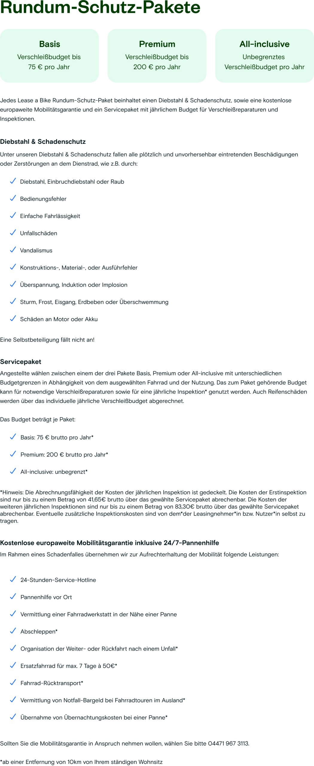 • Premium: Im Falle eines Diebstahls oder Totalschadens wird der Leasingvertrag beendet. Das Rad muss nur abgeschlossen sein.